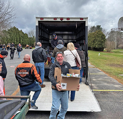 The Acushnet Lions Club held their annual food and toy drive and bike run on Sunday, 11/30/25. About 30 bikers braved the cold weather to pony up $20 and gather at River’s End Cafe where a truck from Adams and Adams awaited. Motorcycle riders, Lions, and other volunteers helped load the truck with the help of 2025 Miss Apple Peach, Elyza Wagner, and Jr. Miss Apple Peach, Aubrey Souza.