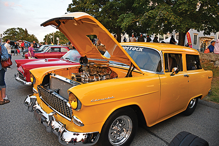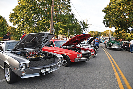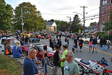 The annual event is sponsored by the town and takes over the Parting Ways area around Town Hall, with Main Street closed down while hundreds of people check out the old rides on the street, in the parking lots of the Town Hall, St. Xavier Church, and Parting Ways.