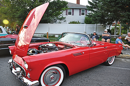 - A 1955 Thunderbird owned by Salt Philla (seated) since he was 14 years old is on display at the annual Acushnet Car Cruise on 8/2/28 in the center of town. Photo by Beth David.