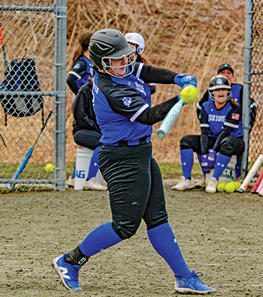 - Fairhaven Blue Devil, Brianna Pierce, makes direct contact and crushes the ball during the softball game on 3/30/26 when Fairhaven beat Dartmouth 21-1 at Dartmouth. Photo by Caden Lisa for the Fairhaven Neighborhood News.