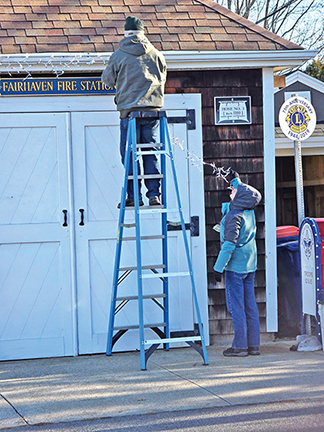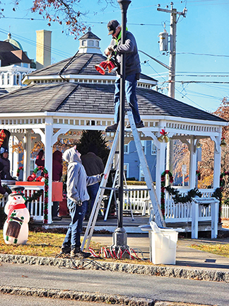 - Scouts from Troop 52 in Fairhaven help set up Christmas decorations at Benoit Square on 11/29/25 in preparation for the lighting ceremony on 12/5/25. Photo courtesy of Troop 52..