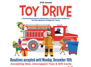27th annual Toy Drive, a partnership between United Way of Greater New Bedford and the New Bedford Firefighters Union. Donations accepted until Monday, 12/15 (NOTE DATE CORRECTION). Accepting new, unwrapped toys and gift cards. Every toy you donate will go to a child in need, making their holidays a little brighter. All donations will be… [Read More]