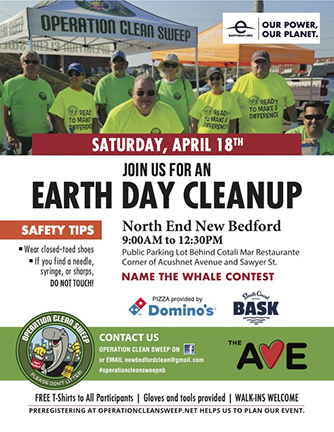 Join Operation Clean Sweep for a neighborhood cleanup on Sat., 4/18, 9 a.m. Meet in the public parking lot behind Cotali Mar Resaurante, 1178 Acushnet Ave., New Bedford.