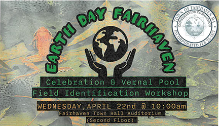 Celebration & Vernal Pool Field Identification Workshop, Wed., 4/22, 10 a.m., Fairhaven Town Hall audi­torium (2nd floor), 40 Center St., Fairhaven.