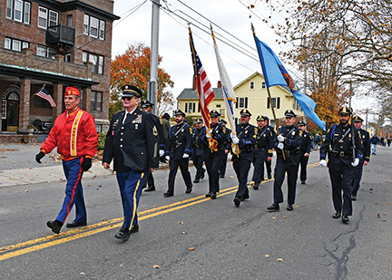 Veterans and the Fairhaven Police march in the Fairhaven Veterans Day parade on 11/11/25. Photo by Beth David.