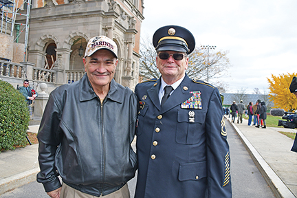 L-R: Veteran Louis Matos and SFC Bill Kligel pose for the local free sheet after the Fairhaven Veterans Day Parade and ceremony on 11/11/25. Photo by Beth David.