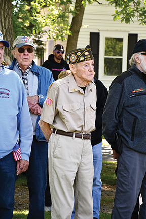 - Army Veteran Gus Cote, 92, listens during the Memorial Day ceremony held at Riverside Cemetery after the Parade in Fairhaven on 5/26/25. Photo by Beth David.