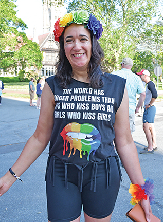- Sydney wears a shirt proclaiming that the world has bigger problems than boys who kiss boys and girls who kiss girls at Fairhaven’s Got Pride on 6/22/25. Photo by Beth David.