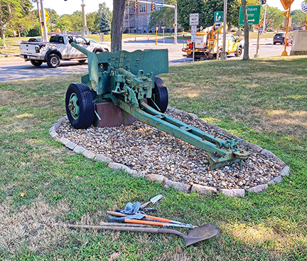 Hand tools are at the ready at the US Armed Forces Memorial in Fairhaven on Route 6 between Middle and Main Streets, where the new gardening group, the Green Lanterns, have been working to weed and plant and maintain. Submitted photo