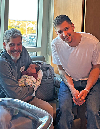 Proud grandfather, Shawn Duarte, holds his new granddaughter, Liliana, while proud dad, Michael Duarte, also basks in the glory after Shania Dos Santos Duarte gave birth to Liliana, 9 lbs, 3 oz., on 4/5/26, the same birthday as her father and grandfather. Submitted photo.