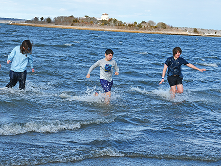 West Island also had a less formal plunge at noon, with about 15 hardy souls braving the wind, which had picked up and gusted to more than 40 MPH. The crowd then retreated to a neighbors house for the annual get-together.