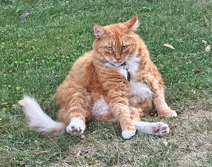 - Buddy, the king of William Street in Fairhaven, Mass., looks plump and happy as he makes himself comfortable on a lawn in the center of town. Photo courtesy of Tim Garcia.