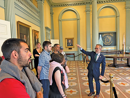 Rep. Mark Sylvia (D), Fairhaven, gives a tour of the Massachusetts statehouse to participants of M.O. L.I.F.E’s Fairhaven and Middleborough CBDS (Community-Based Day Support) program on 7/1/25. Submitted photo.