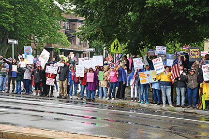 Saturday’s protests were organized by a number of groups. In Fairhaven, the Town Democratic Committee took the lead and held the demonstration at Fairhaven High School, where they have been holding protests and visibilities during the past few months.