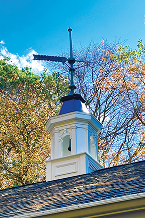 - The Oxford School weathervane, newly restored, sits atop the cupola of the Livesey Club building in Fairhaven. Submitted photo.