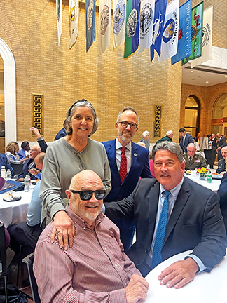 - Randy Durrigan of Fairhaven (seated, LEFT) is joined by (L-R) his wife, Donna Durrigan, Mass. State Representative Mark Sylvia, and Mass. State Senator, Mark Montigny at the state’s first Military Appreciation Day on 5/22/25, when Mr. Durrigan was honored for his service in the US Air Force from 1962–1966, and his work as a Veterans Services Officer. Submitted photo,