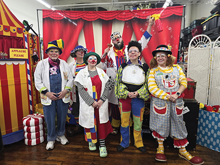 - Clown Class graduates pose for their class picture, L-R: Don “Dr. I.B.A.Porter” Flemming, Bridget “Dr. Am. Knee-Ja” Bruce, Madeline “Dr. Dipsy Doodles” Gray, Jeffrey “Dr. Moo” Morin, Emma “Dr. Glitzy Glitters” Bruce, Elaine “Dr. Daisy Spot ’n’ Dot” Vercellone. Watch for us at a hospital near you! Submitted photo.