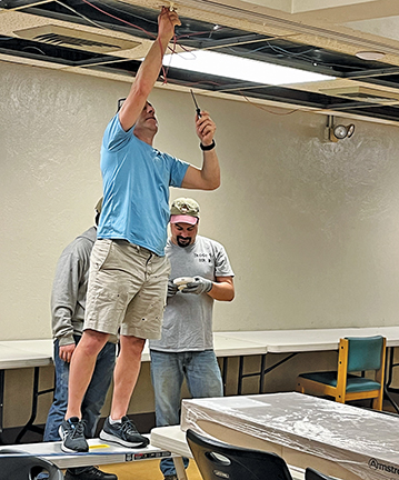 - Scouts from Troop 52 in Fairhaven and their helpers work on replacing the ceiling tiles in the basement of St. Mary’s Church for the Eagle Scout project of Patrick Fleming (LEFT)on 5/31/25. Submitted photo.